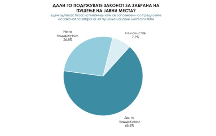 Голема е и поддршката од граѓаните за забрана за пушење на јавни места (65,5 %), а 26,8 не ја подржуваат оваа планирана мерка.