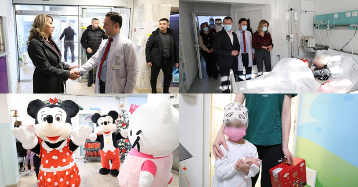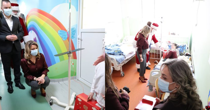 „За време на посетата, таа се сретна со нашите најмали пациенти и им подели подароци во пресрет на новогодишните празници, внесувајќи радост и насмевки во просториите на Клиниката“, велат од Клиниката за детски болести.