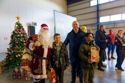 -Дедо Мраз пристигна со хеликоптер и донесе моменти на радост за најмладите, носејќи новогодишни пакетчиња за децата на вработените во Министерството за одбрана и Армијата. Нивната возбуда и насмевки ја исполнија празничната атмосфера и го создадоа вистинскиот дух на новогодишните празници, оставајќи трајни убави спомени.