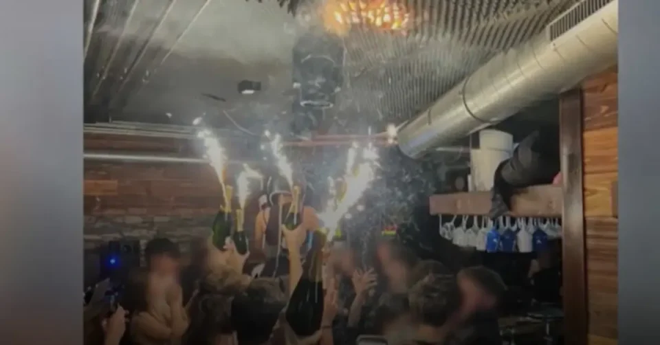 Според нејзините зборови, сè укажува на тоа дека пожарот почнал од запалени прскалки на шишиња шампањ, кои биле премногу блиску до таванот. Пламенот брзо се проширил низ целиот објект.